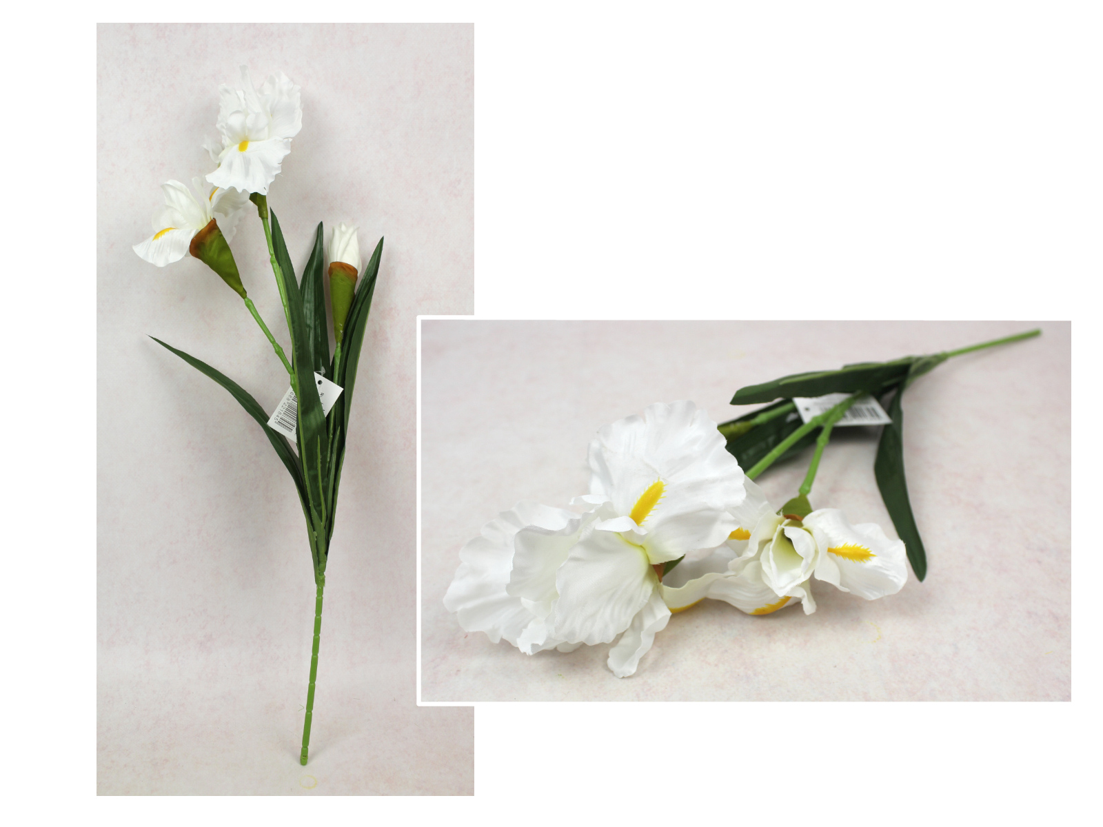 Kwiat IRYS wys. 58 cm, 3 ramiona (2 kwiaty 16-10 cm, pąk) BIAŁY