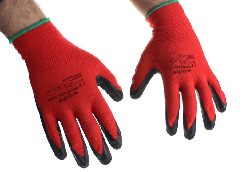 Rękawice robocze POLIESTER czerwony + LATEKS czarny 9-L - 1 para