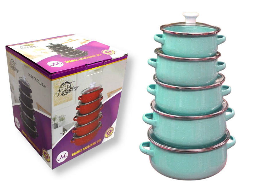 Garnki emaliowane NAKRAPIANE zestaw 5 szt (16/18/20/22/24 cm) MIĘTOWE