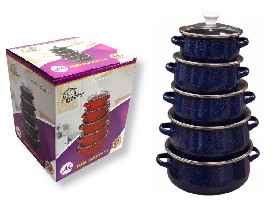Garnki emaliowane NAKRAPIANE zestaw 5 szt (16/18/20/22/24 cm) GRANATOWE