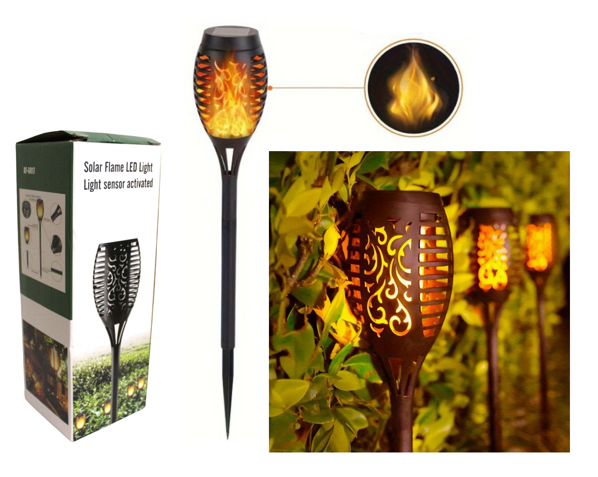 Solarna lampa zewnętrzna z efektem płomienia.