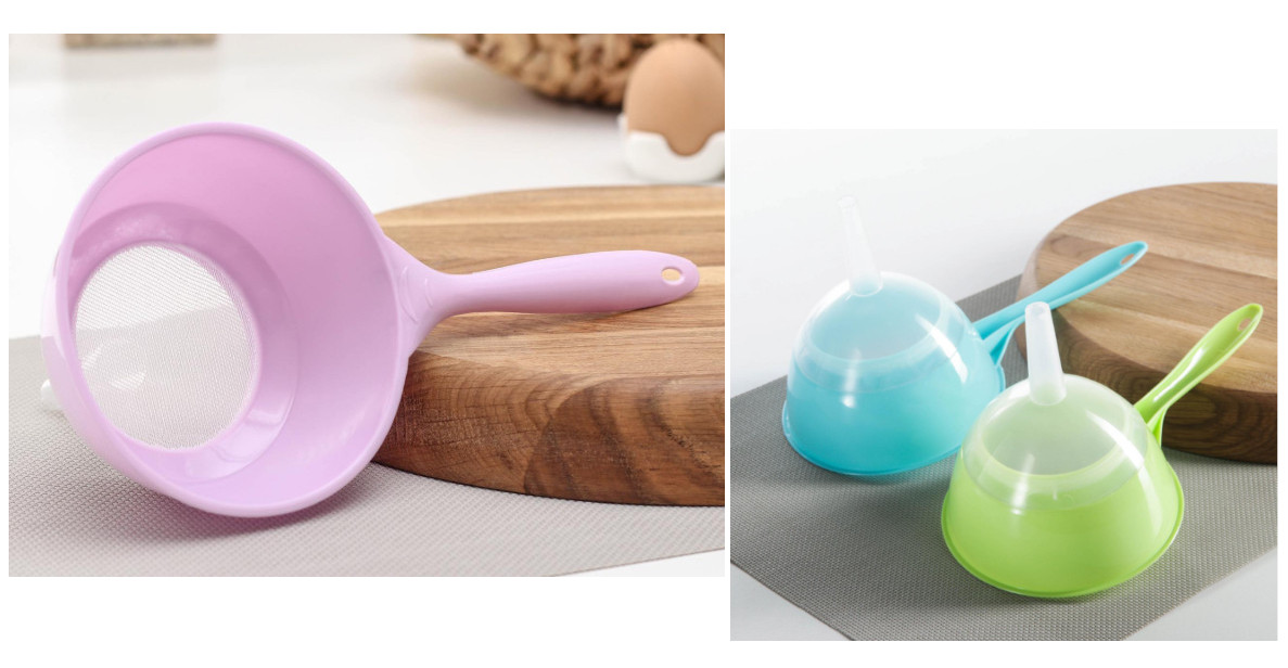 Lejek plastikowy z sitkiem i rączką 25x12,5 cm mix kolor