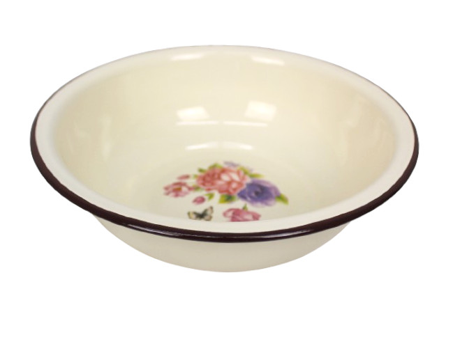 Miska emaliowana 22x6,5 cm - KREMOWA wzór KWIATY