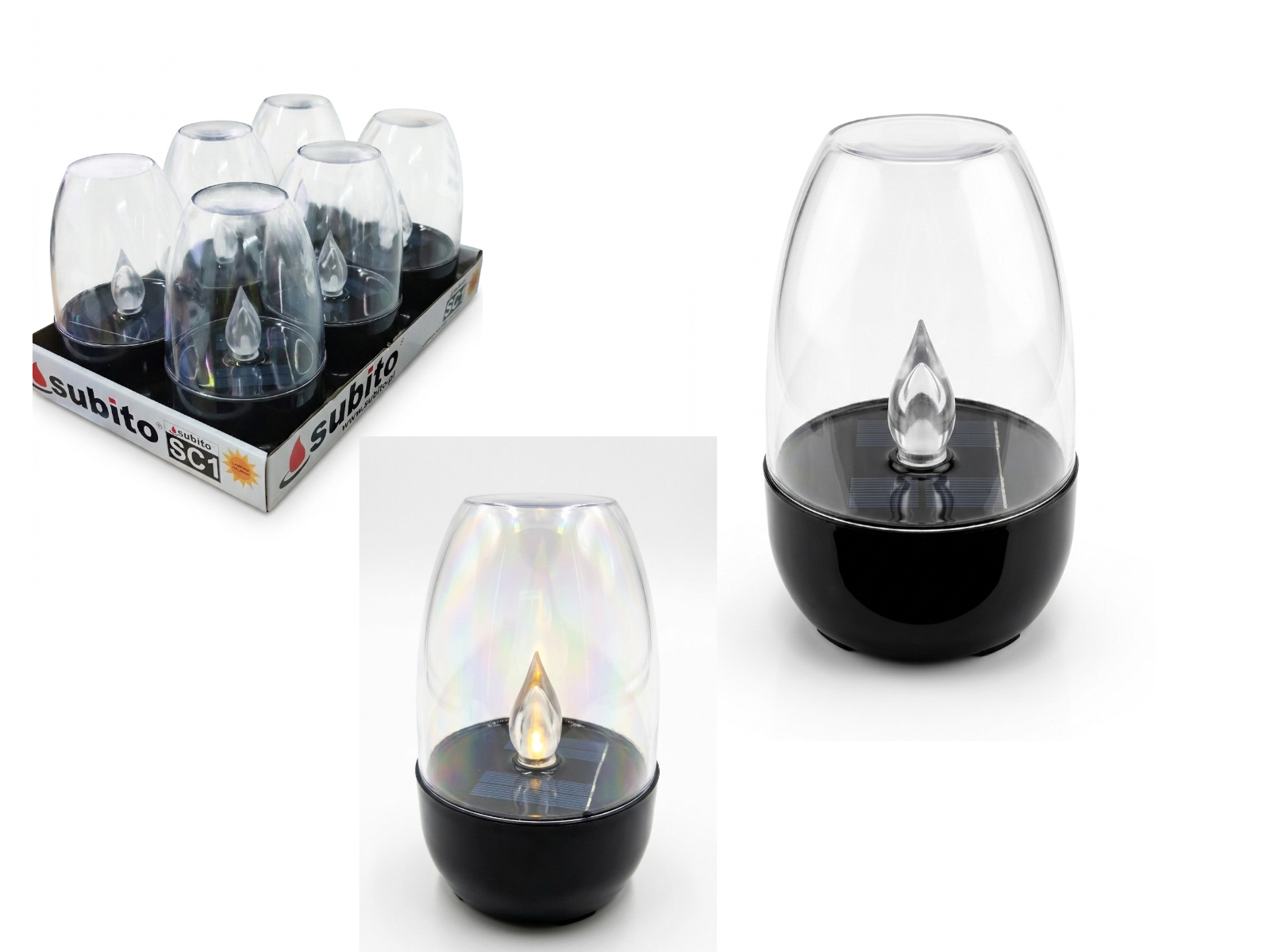 Znicz SOLARNY SC1 z transparentnym plastikowym kloszem i czarną podstawą (S536)
