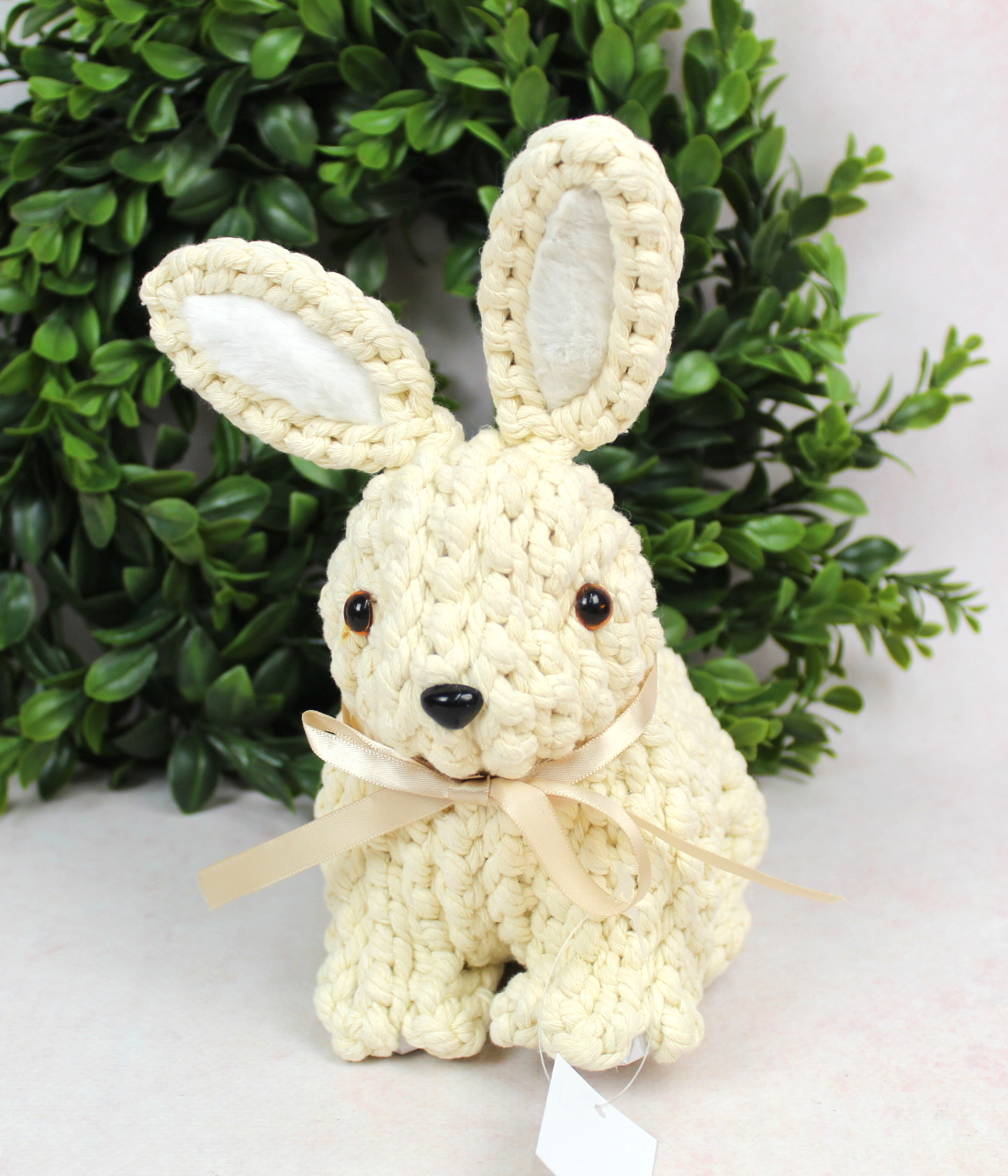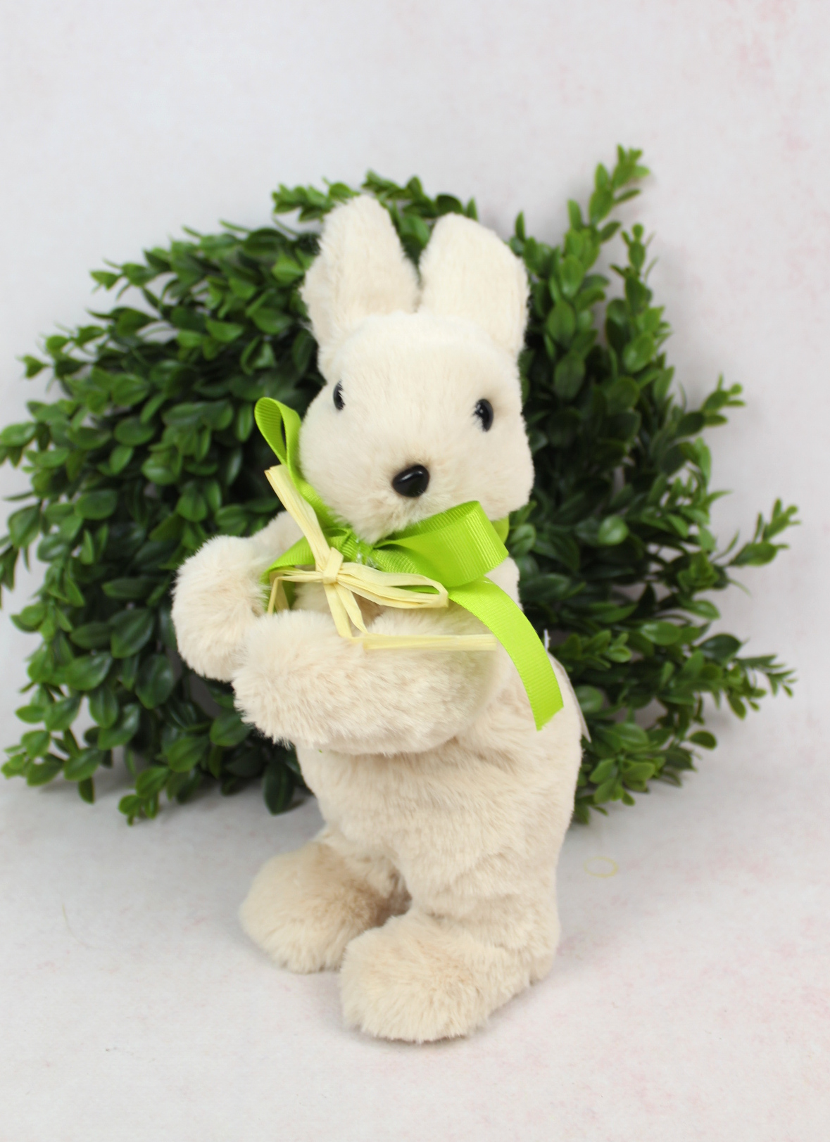 Dekoracja wielkanocna styropian-plusz ZAJAC z kokardą 26x18x12 cm beżowy