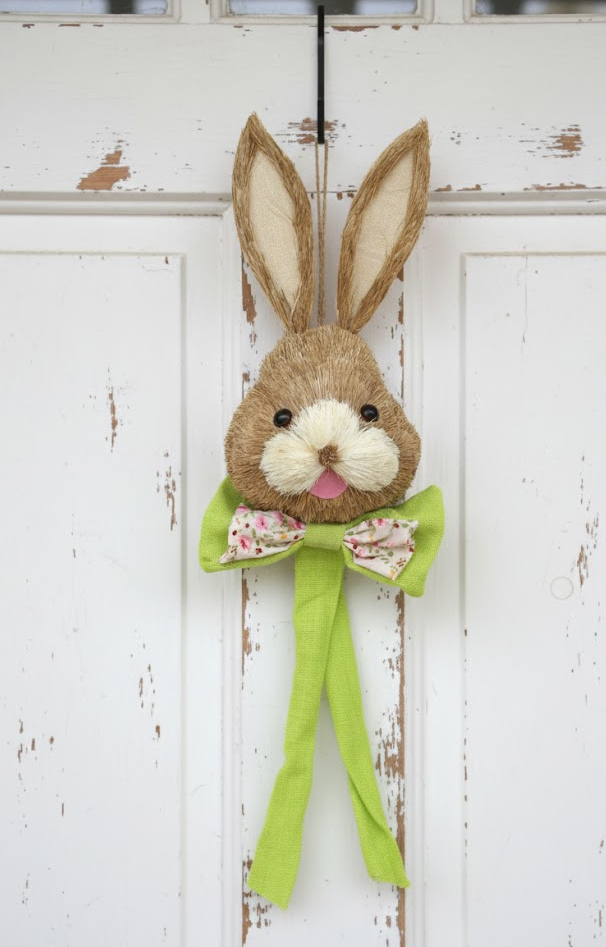 Dekoracja wielkanocna, zawieszka styropian-siano ZAJAC Z KOKARDĄ 85x25x12 cm