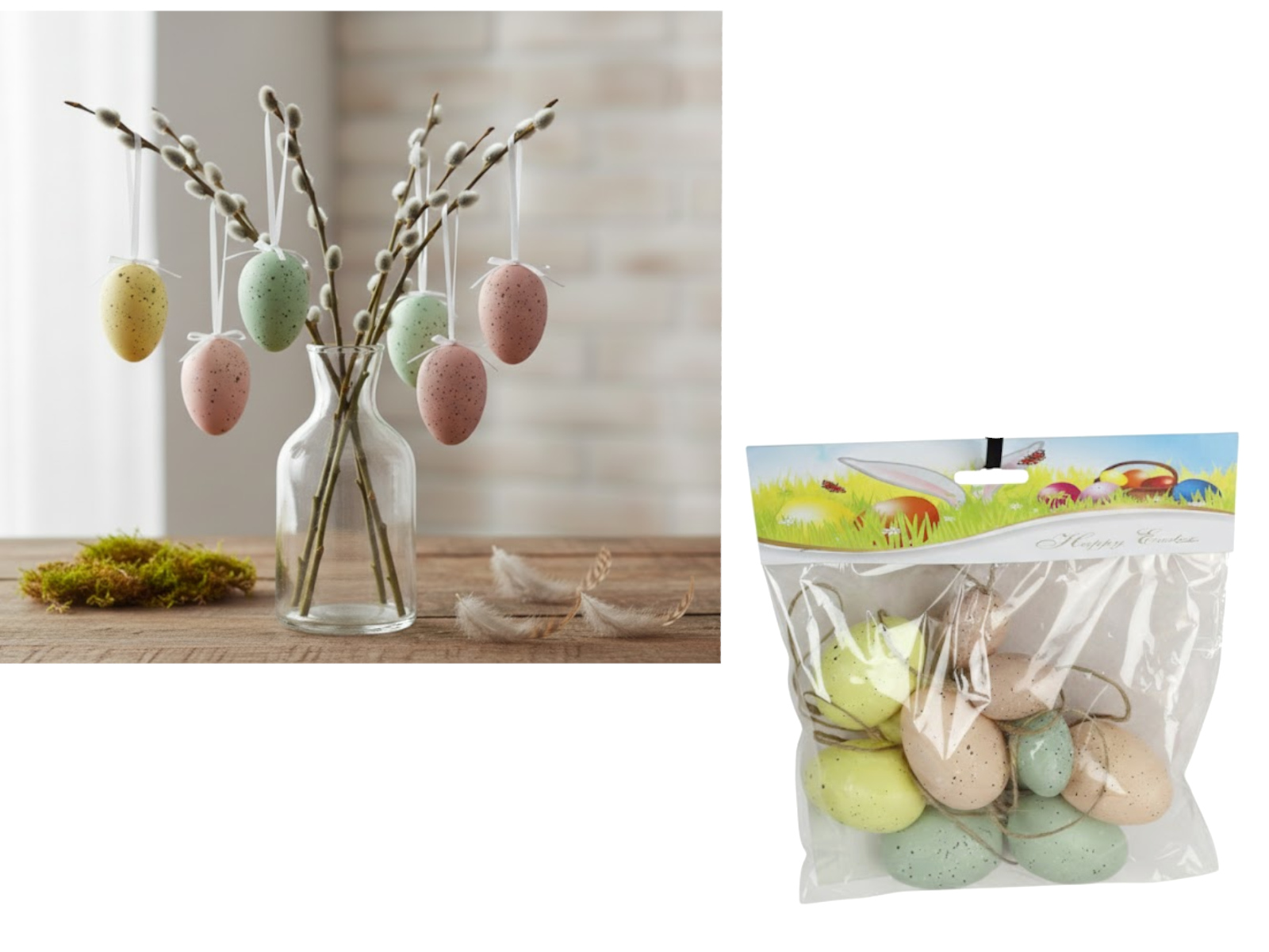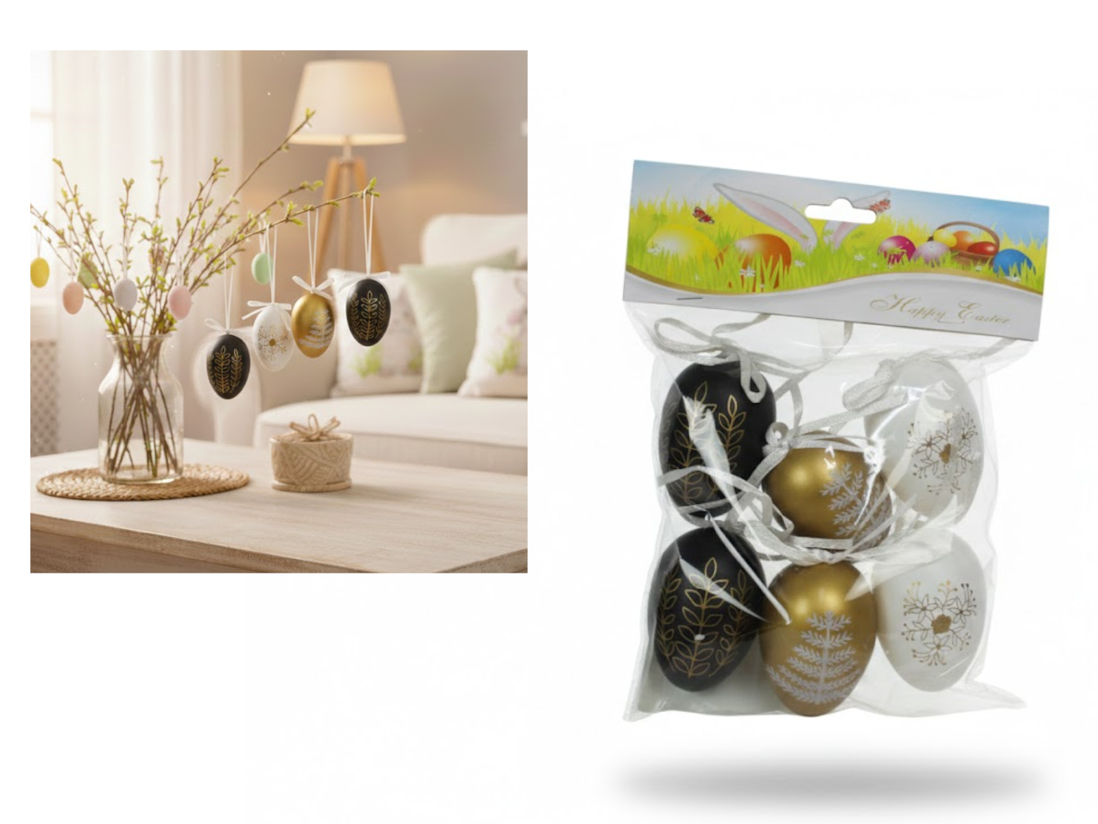 Dekoracja zawieszka wielkanocna JAJKO 6 cm  w kartonie biało-szare ZŁOTY PAS kpl. 6 szt