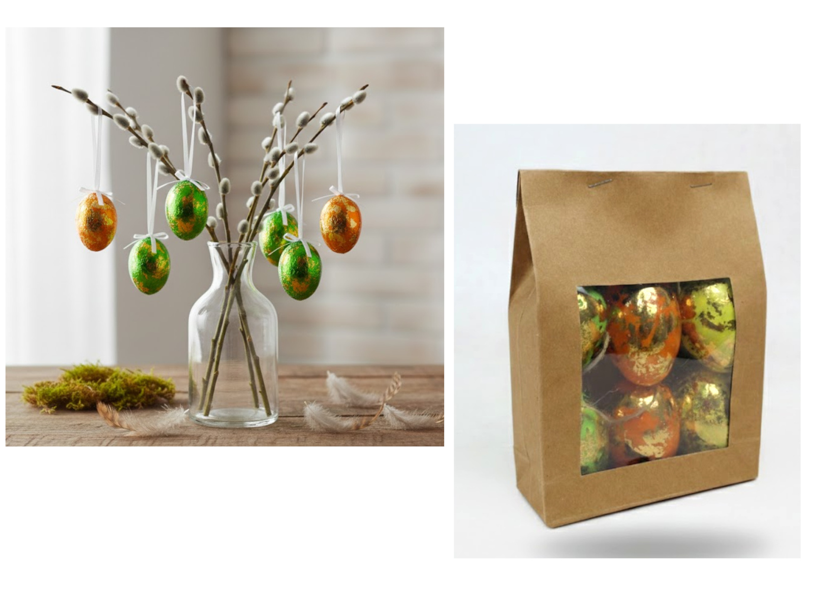 Dekoracja zawieszka wielkanocna JAJKO 6 cm w papierowej torbie POZŁACANE kpl. 6 szt