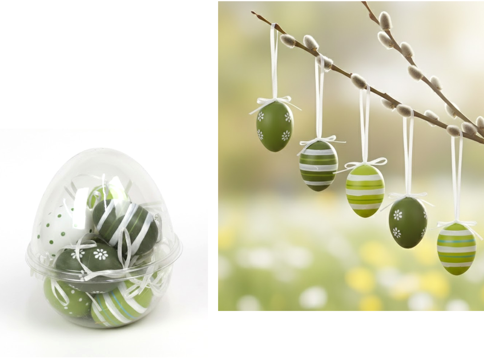 Dekoracja zawieszka wielkanocna JAJKO 6 cm w plastikowym pudełku zielone, białe MIX WZORÓW kpl. 12 szt