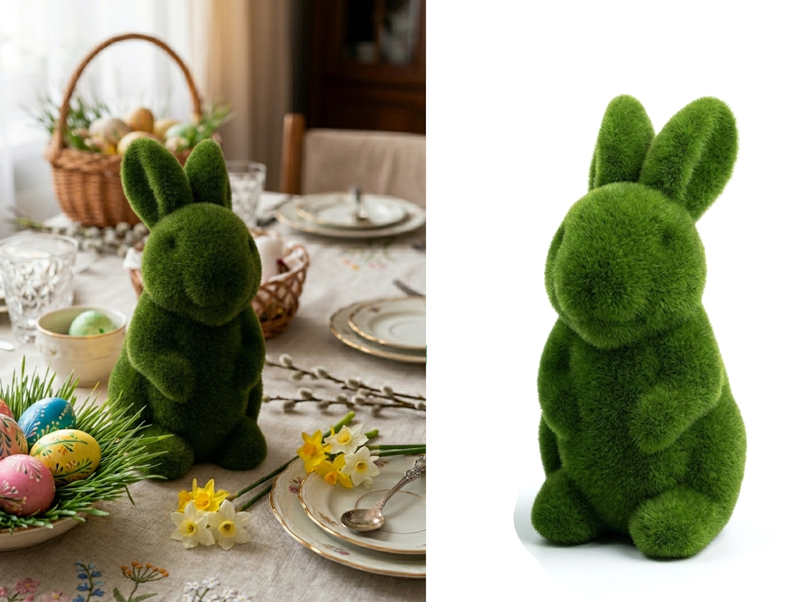 Dekoracja wielkanocna styropianowa ZAJĄC flokowany 18x11x8,5 cm ZIELONY