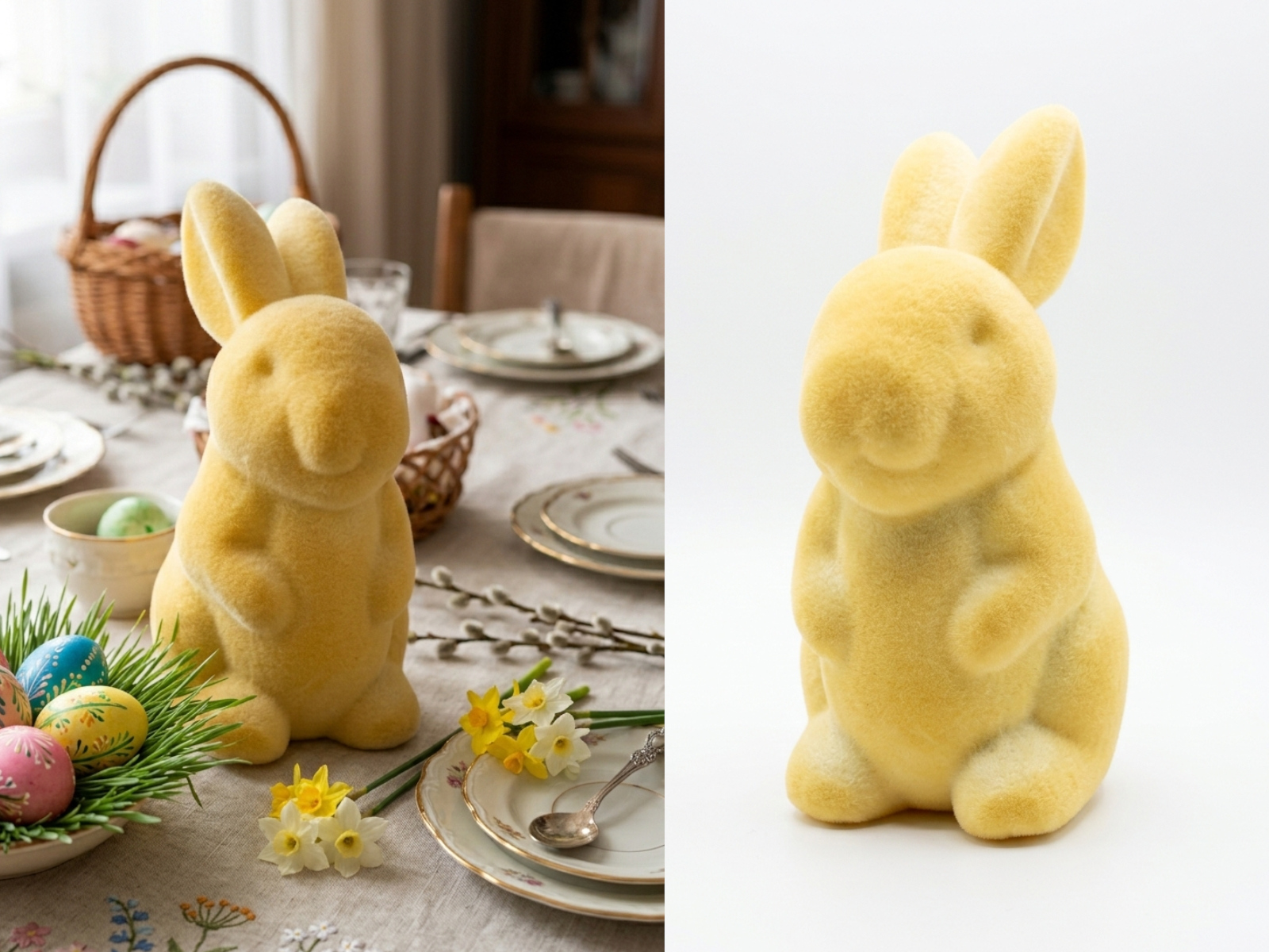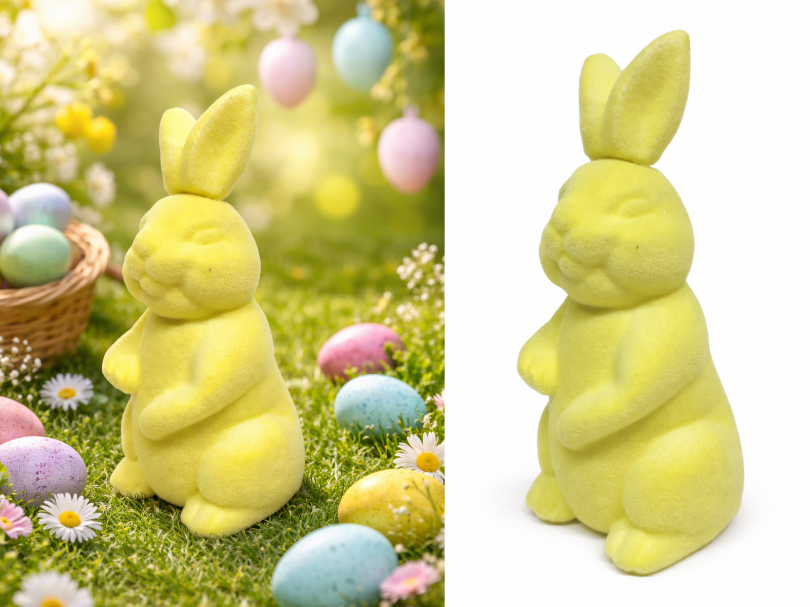 Dekoracja wielkanocna styropianowa ZAJĄC flokowany 18x11x8,5 cm JASNO ŻÓŁTY