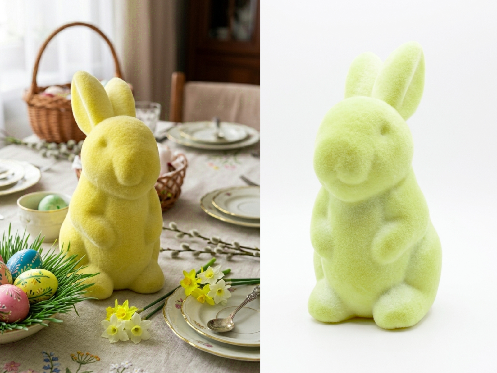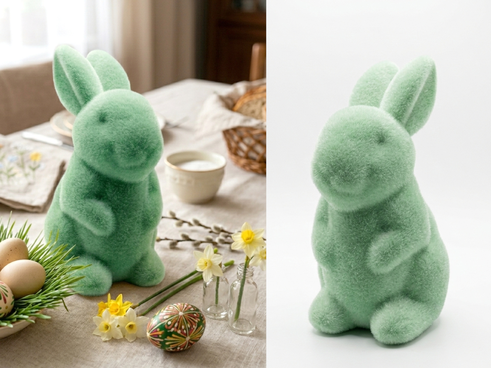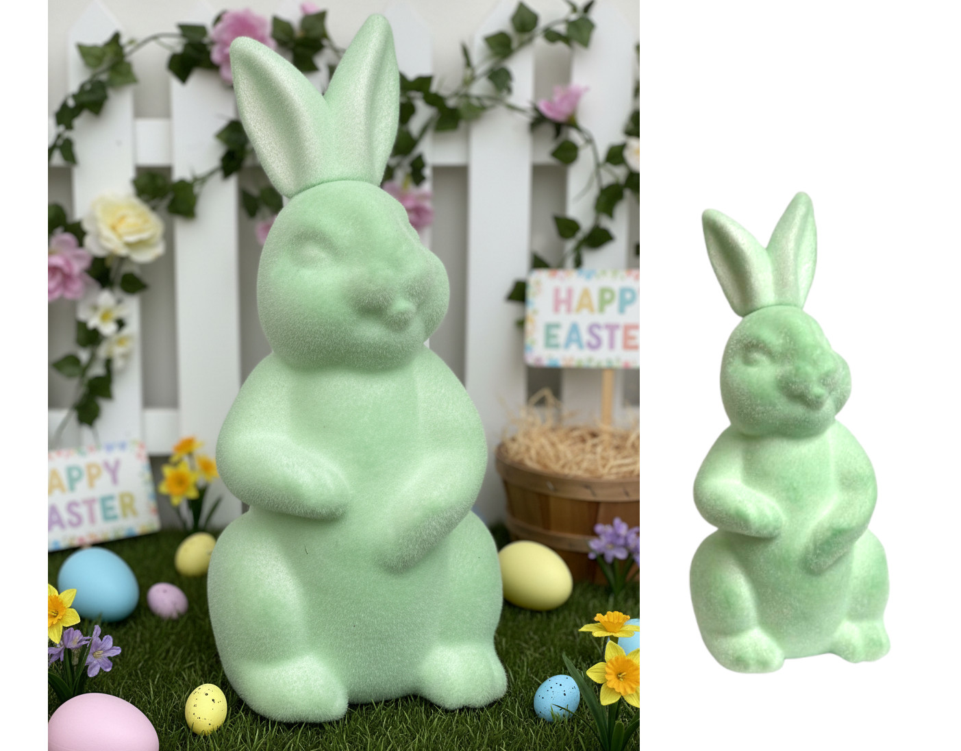 Dekoracja wielkanocna styropianowa ZAJĄC flokowany 35x15x15 cm JASNO ZIELONY