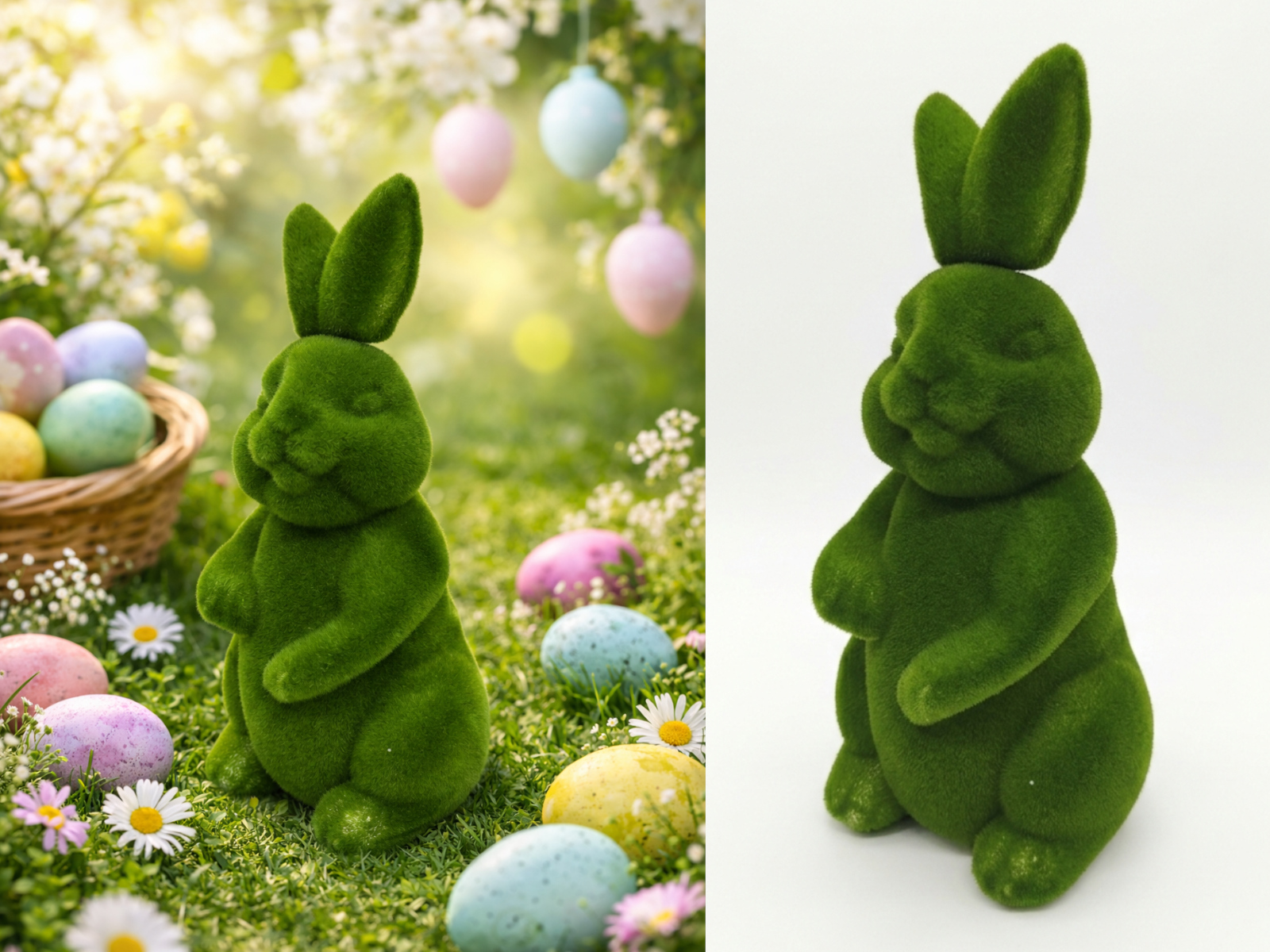 Dekoracja wielkanocna styropianowa ZAJĄC flokowany 35x15x15 cm ZIELONY