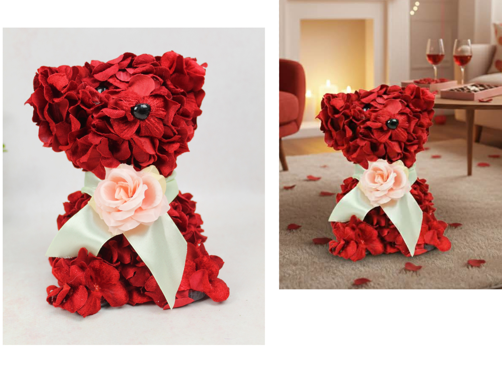 Upominek PIES z kwiatów wys. 20x15x15 cm czerwony