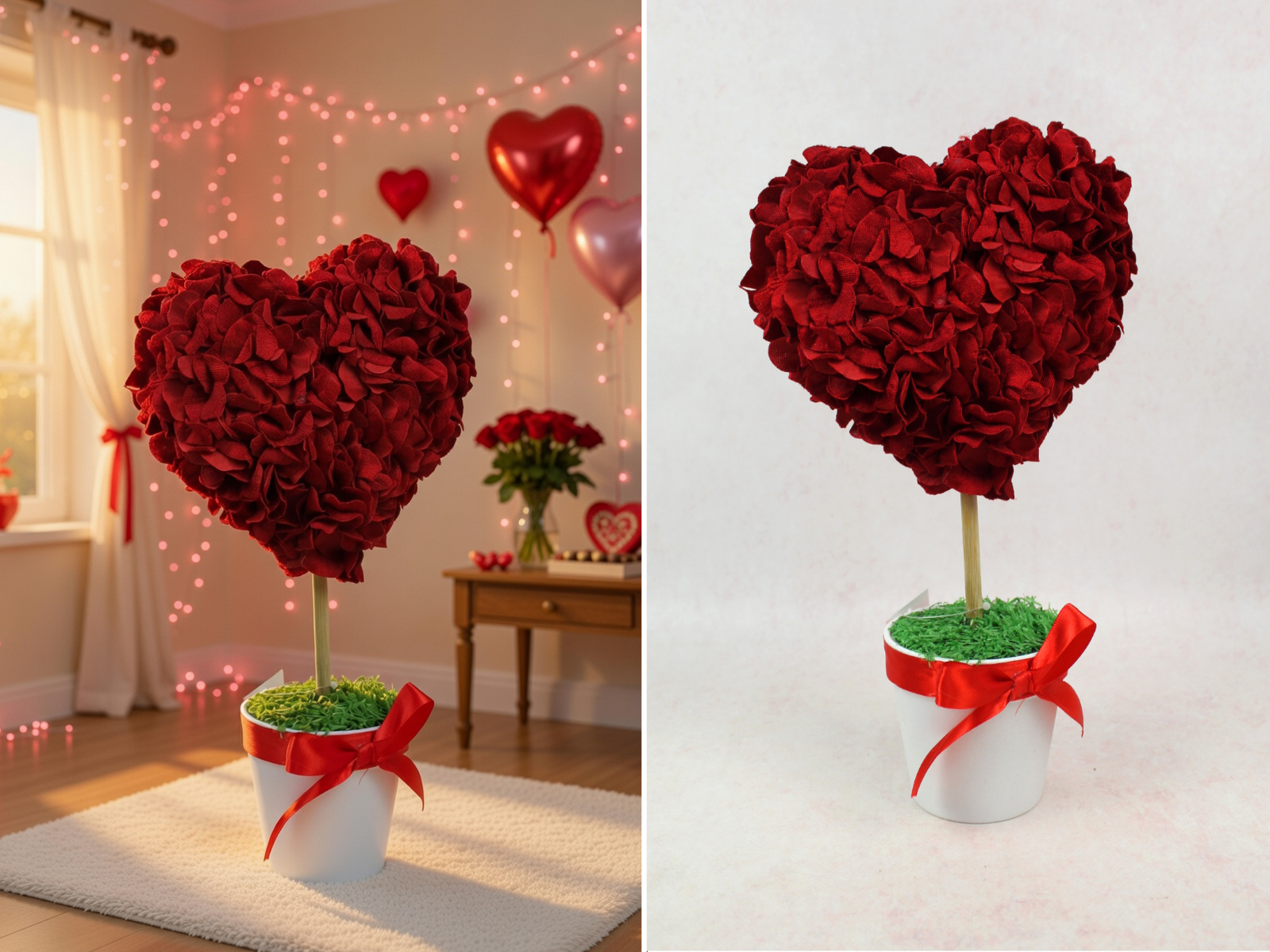 Upominek SERCE z kwiatów w białej doniczce 33x18x9 cm czerwony