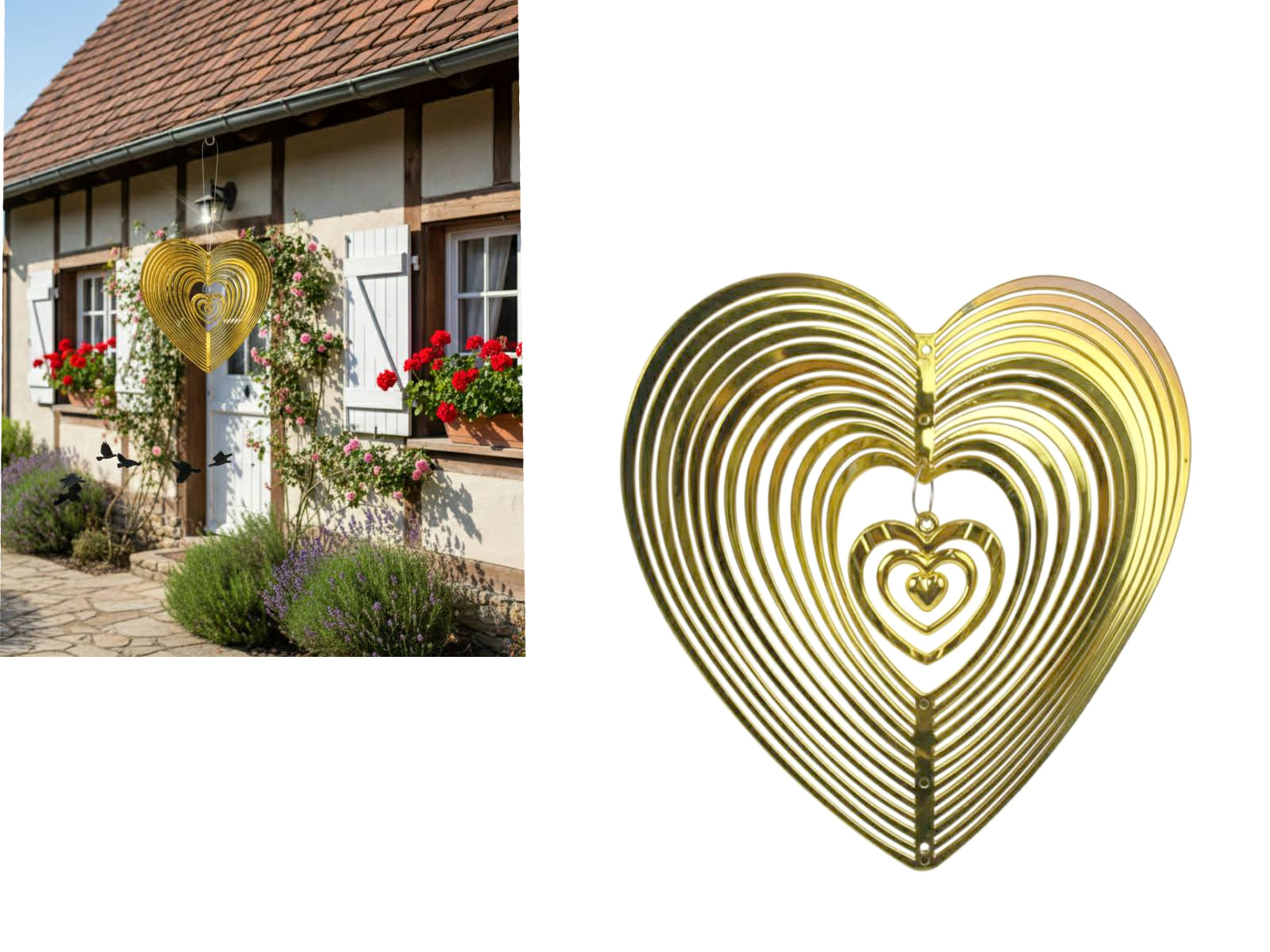 Zawieszka wietrzna, plastikowa SERCE odstraszacz PTAKÓW 20 cm - ZŁOTA