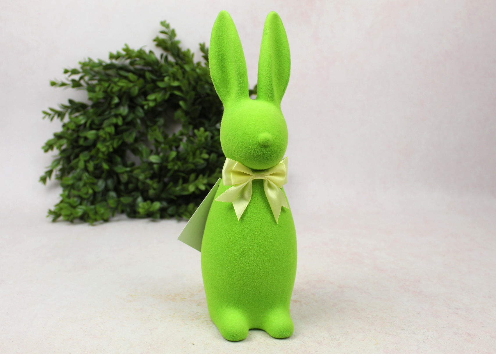 Dekoracja wielkanocna plastikowy ZAJĄC flokowany 29x10x9 cm ZIELONY