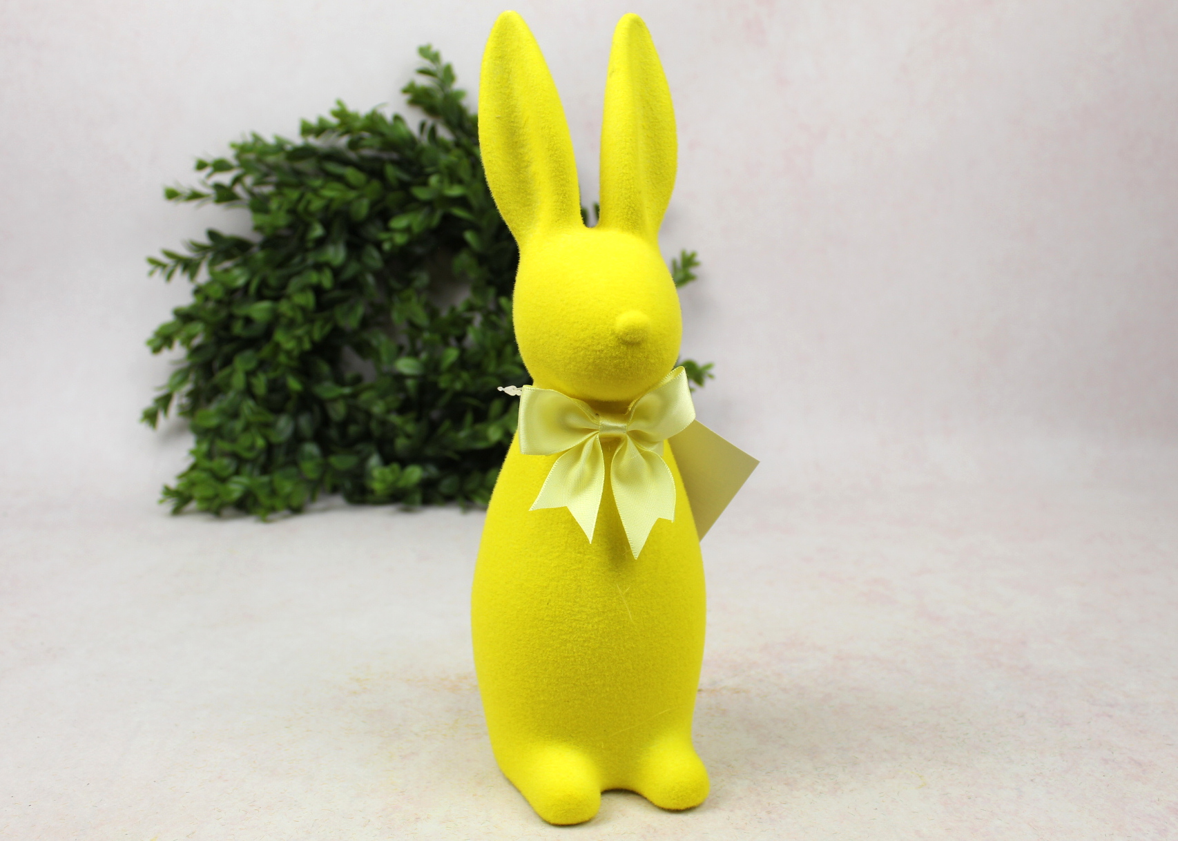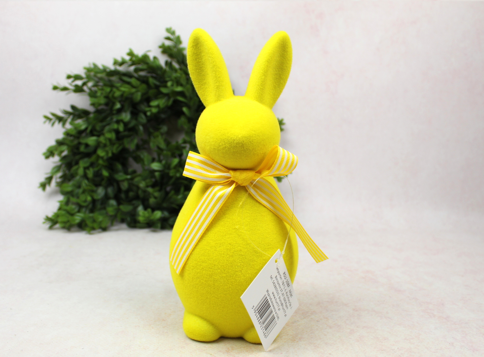 Dekoracja wielkanocna plastikowy ZAJĄC flokowany 29x10x9 cm ŻÓŁTY