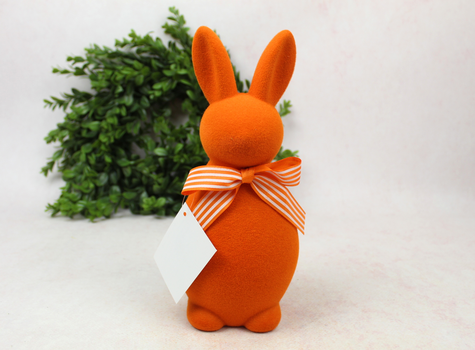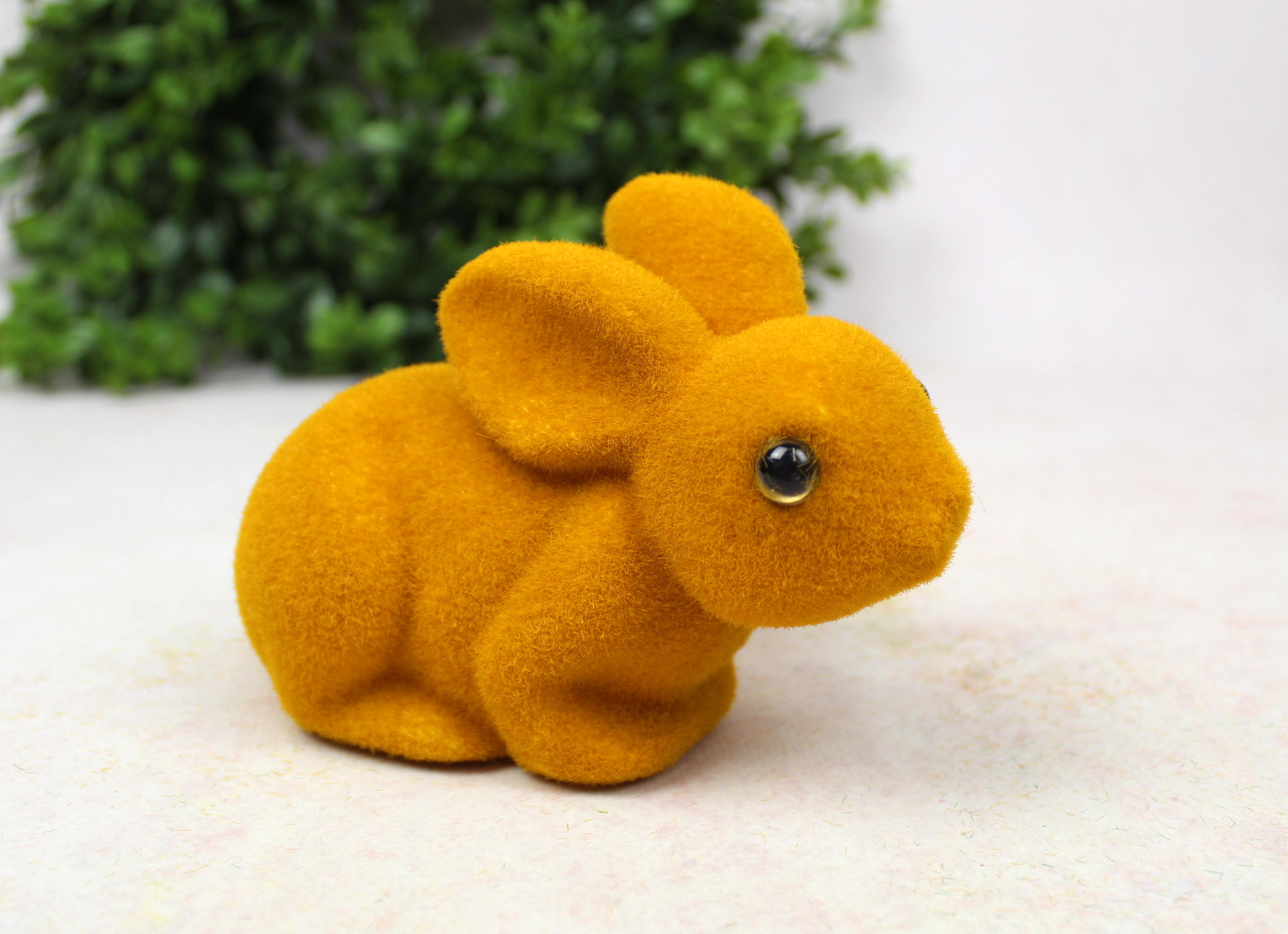 Dekoracja wielkanocna plastikowy ZAJĄC flokowany 25x11x10 cm POMARAŃCZOWY