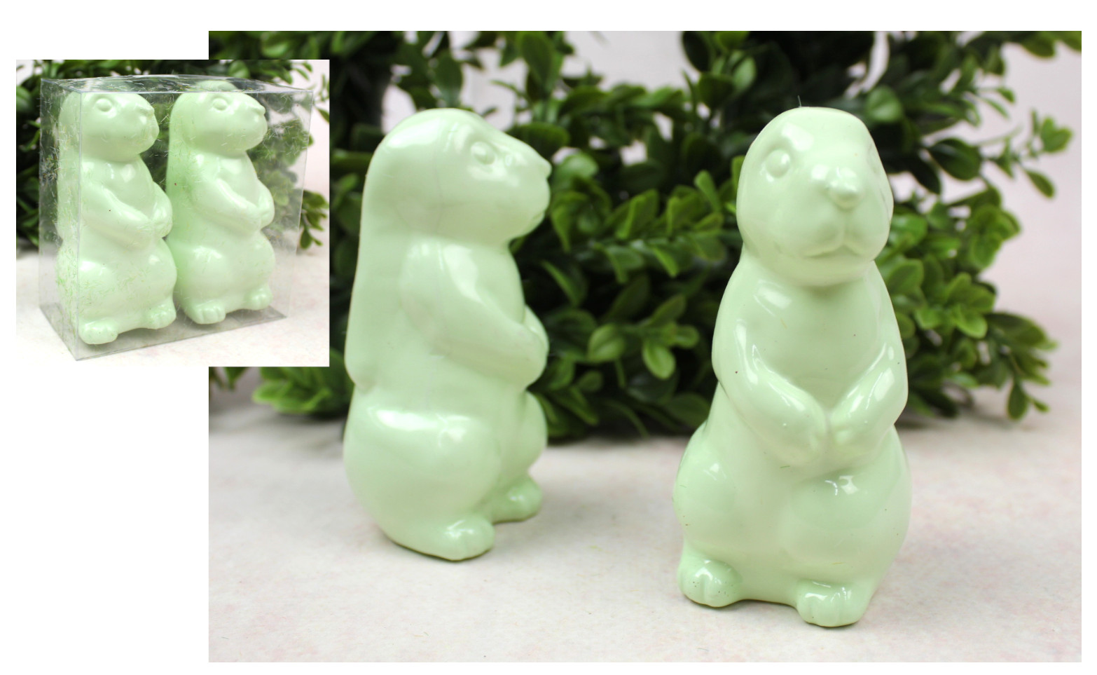 Dekoracja wielkanocna plastikowy ZAJĄC 10x5x5 cm ZIELONY kpl. 2 szt