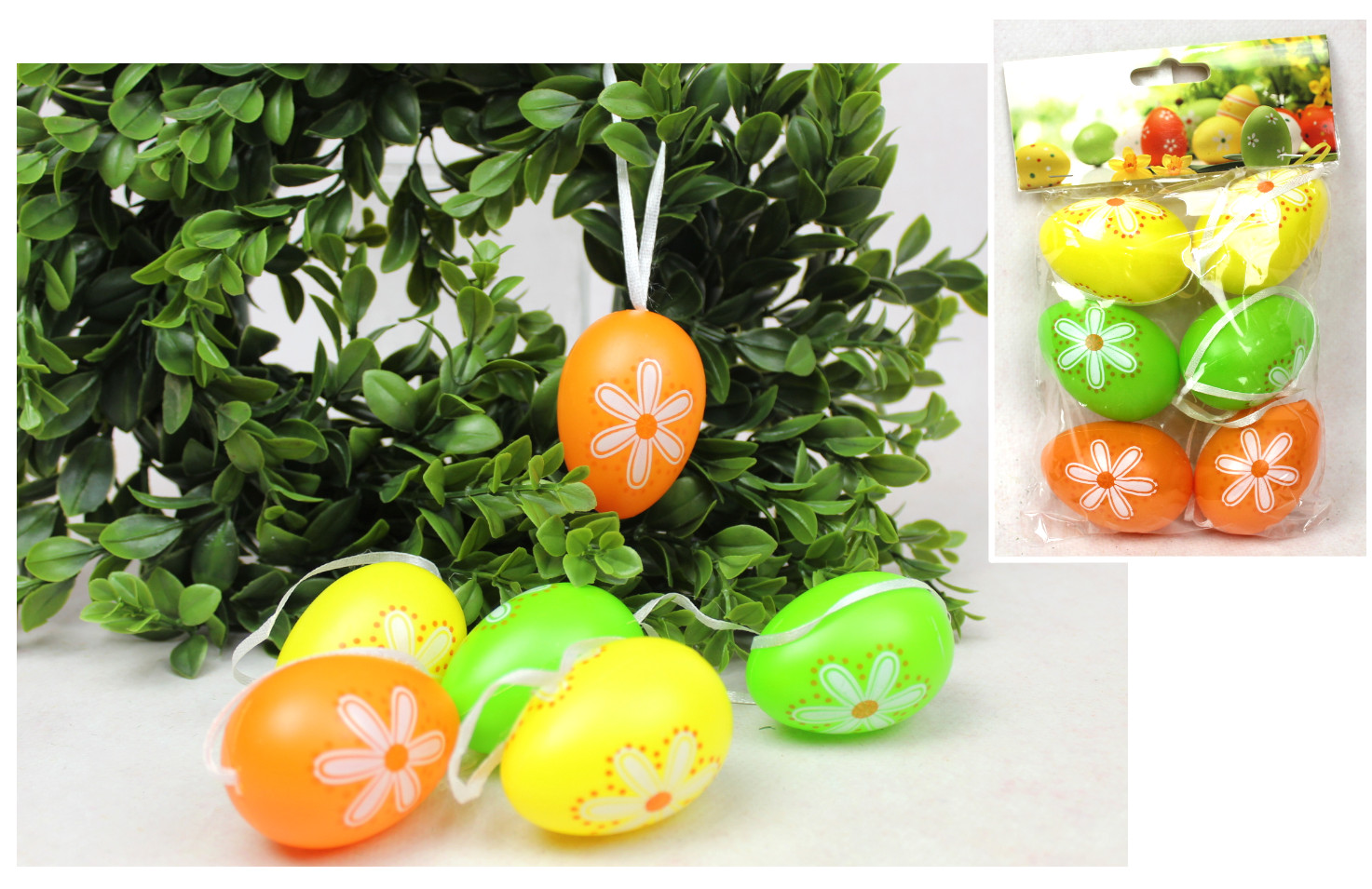 Dekoracja wielkanocna plastikowe JAJKA z zawieszką 6x4 cm kpl 6 szt MIX KOLOR