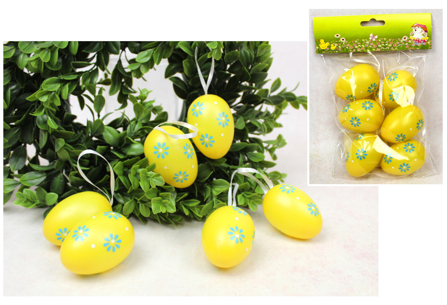 Dekoracja wielkanocna plastikowe JAJKA z zawieszką 6x4 cm kpl 6 szt ŻÓŁTE