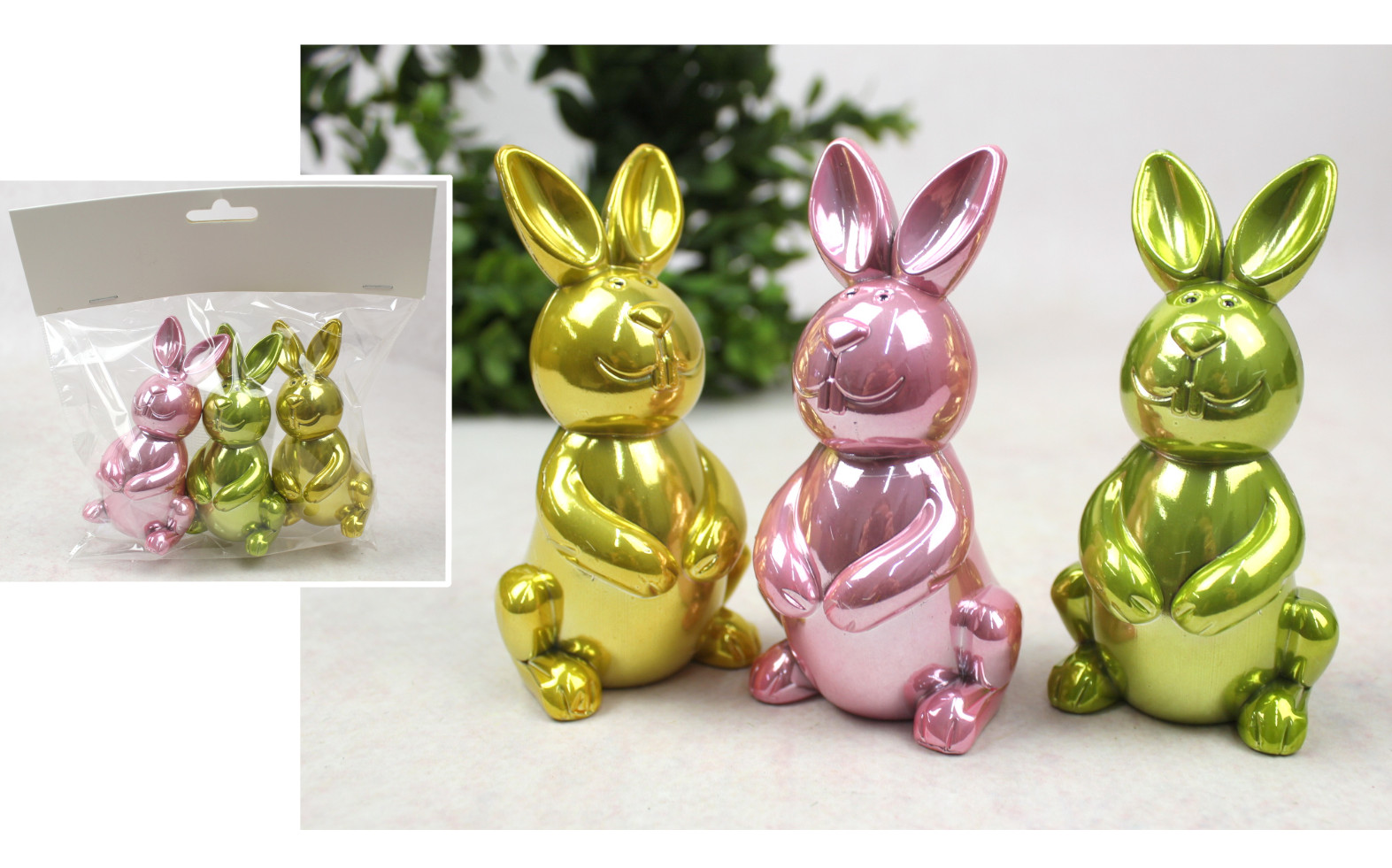 Dekoracja wielkanocna plastikowy ZAJĄC 10x5x3 cm MIX KOLOR metalizowany kpl. 3 szt