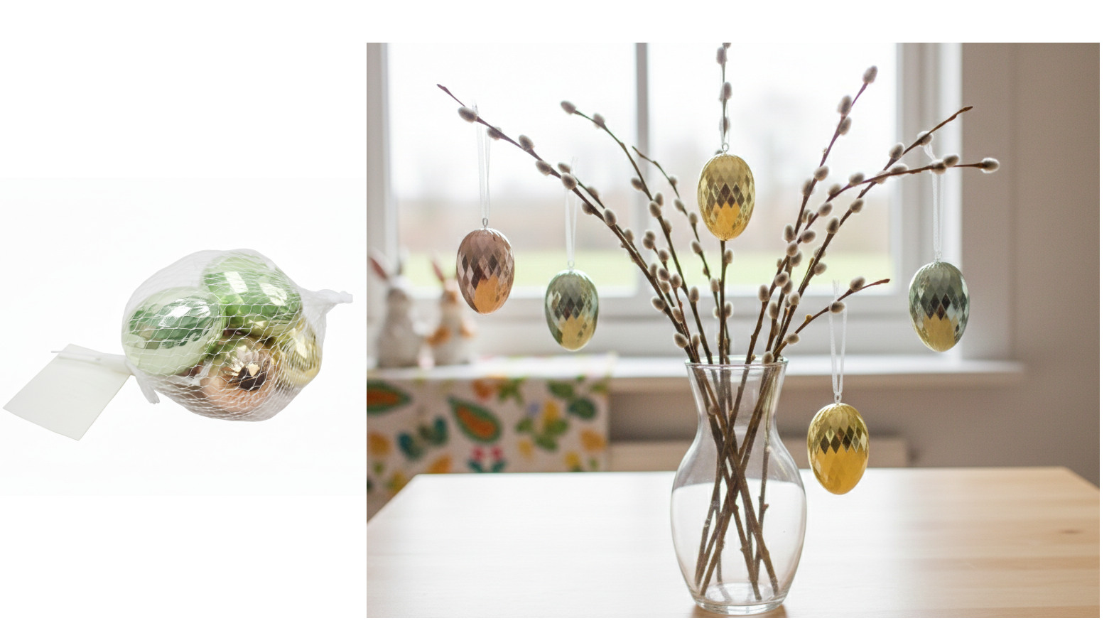 Dekoracja wielkanocna styropianowe flokowane JAJKA zawieszka 13x9/9x7 cm kpl 4 szt