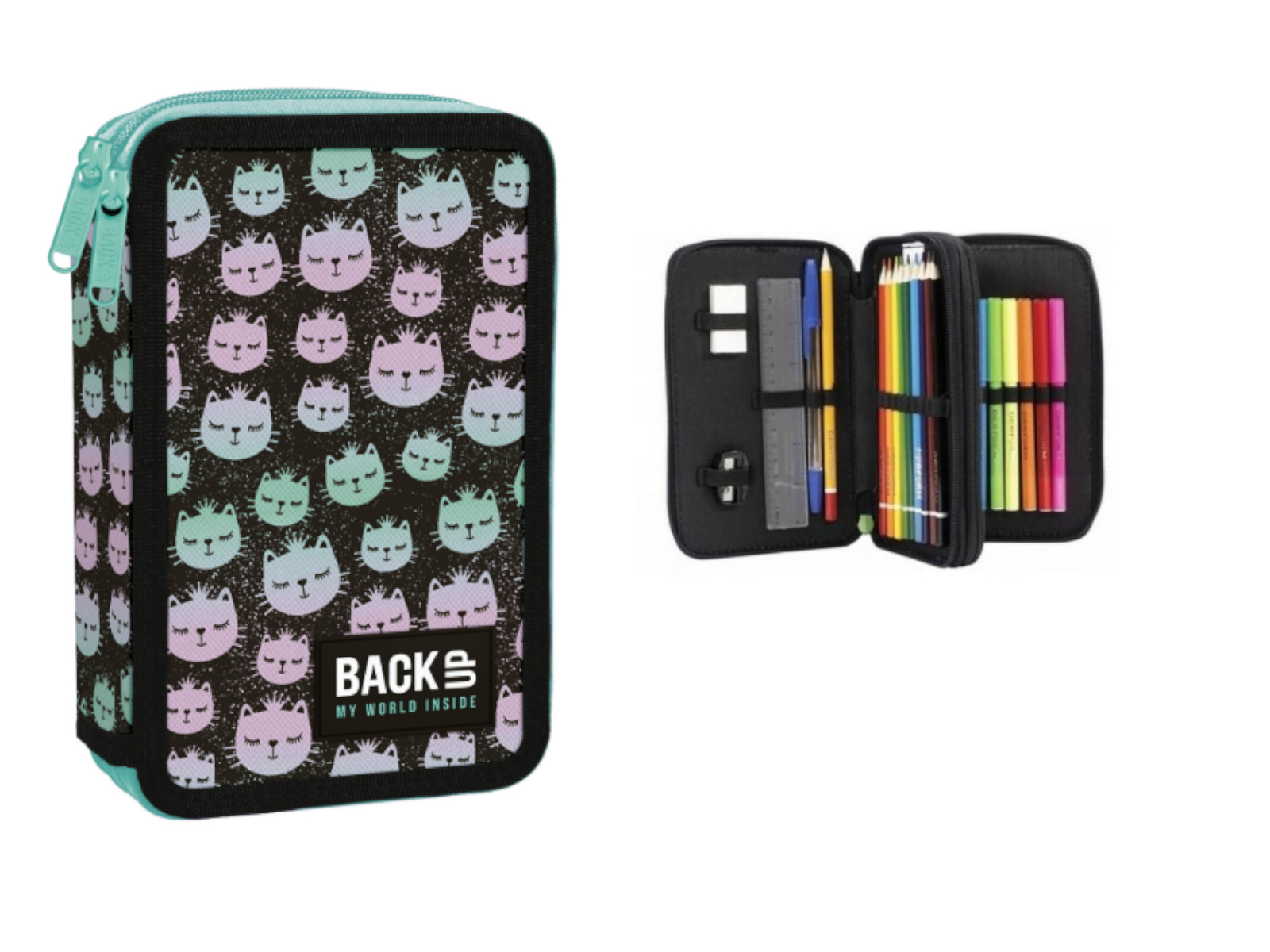 f Piórnik z wyposażeniem podwójny 20x13x5 cm BACKUP 6 MODEL DW 12 WYDRY