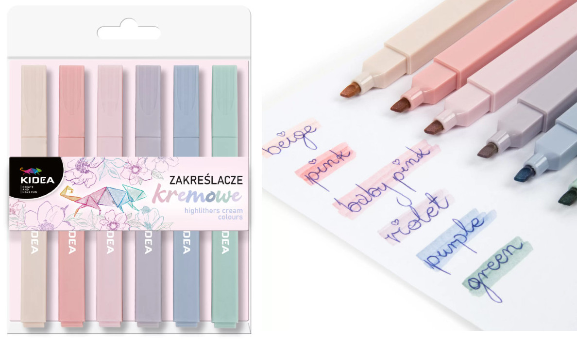 KIDEA Zakreślacze KREMOWE geometryczne kpl 6 szt