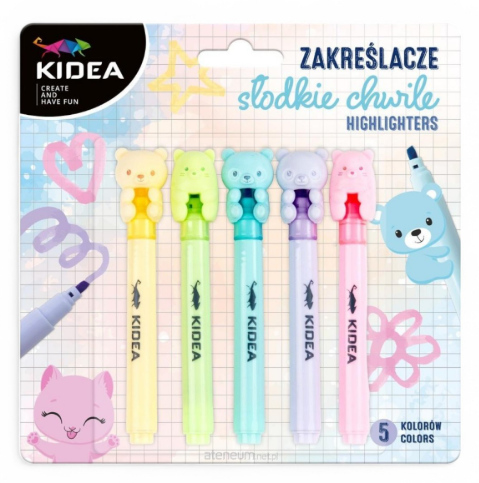 KIDEA Zakreślacze SŁODKIE CHWILE 5 kolorów na blistrze
