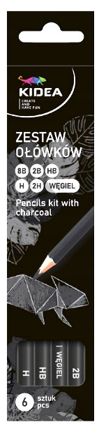 KIDEA Zestaw ołówków + węgiel - kpl 6 szt