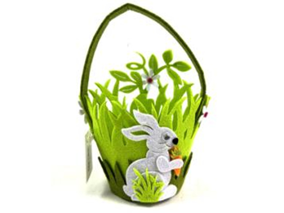 Koszyk filcowy wielkanocny ZAJĄC Z MARCHEWKĄ 21 cm (z rączką) 14x8 cm ZIELONY