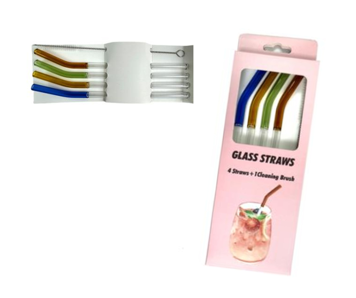 Słomki szklane KOLOROWE - zestaw 4 szt + czyścik