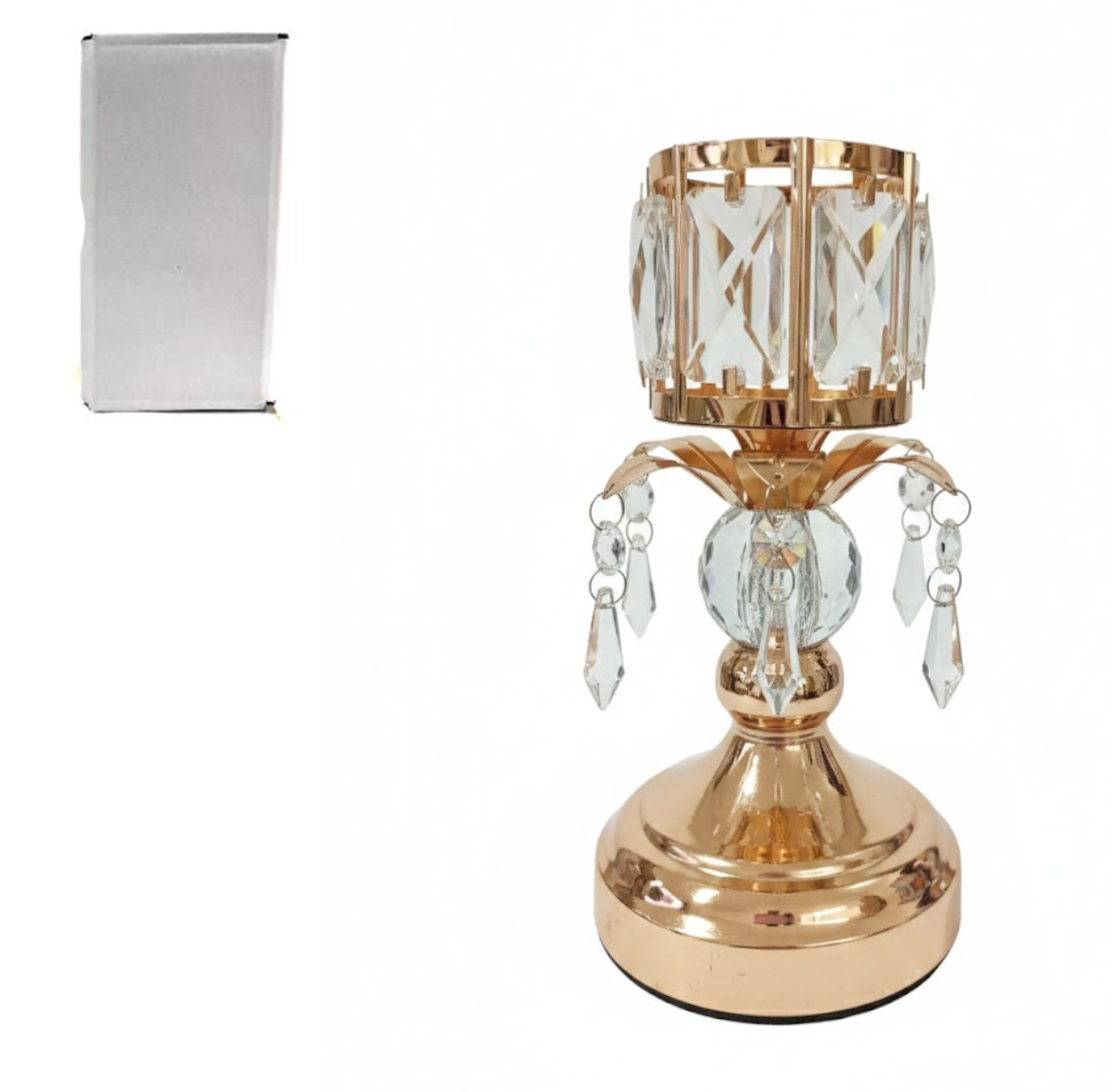 Świecznik metalowy złoty z kryształkami KIELICH NA NÓŻCE 23x11,5 cm