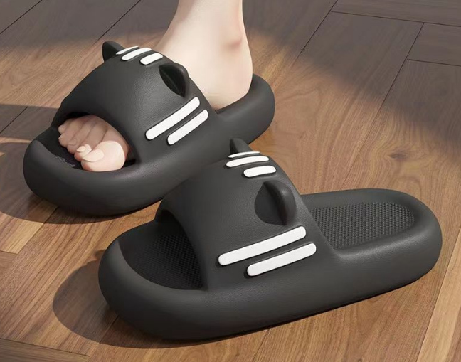 Klapki piankowe PCV roz: 40-41 CZARNE Z BIAŁYMI PASKAMI i uszami