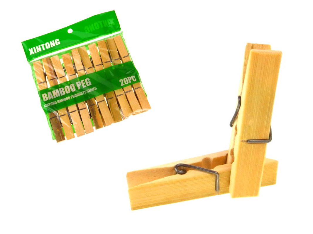 Klamerki, spinacze do prania, do bielizny BAMBUS (6x1,1 cm) - 20 szt