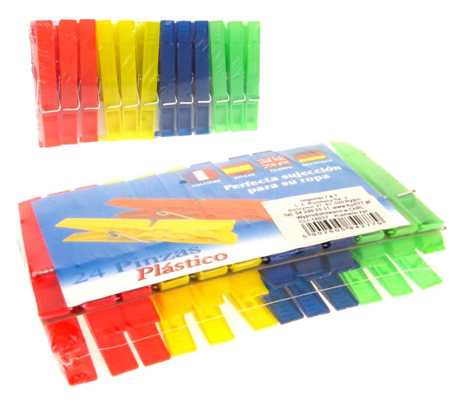 Klamerki, spinacze do prania, do bielizny PLASTIK (7,3x1 cm) - kpl 24 szt