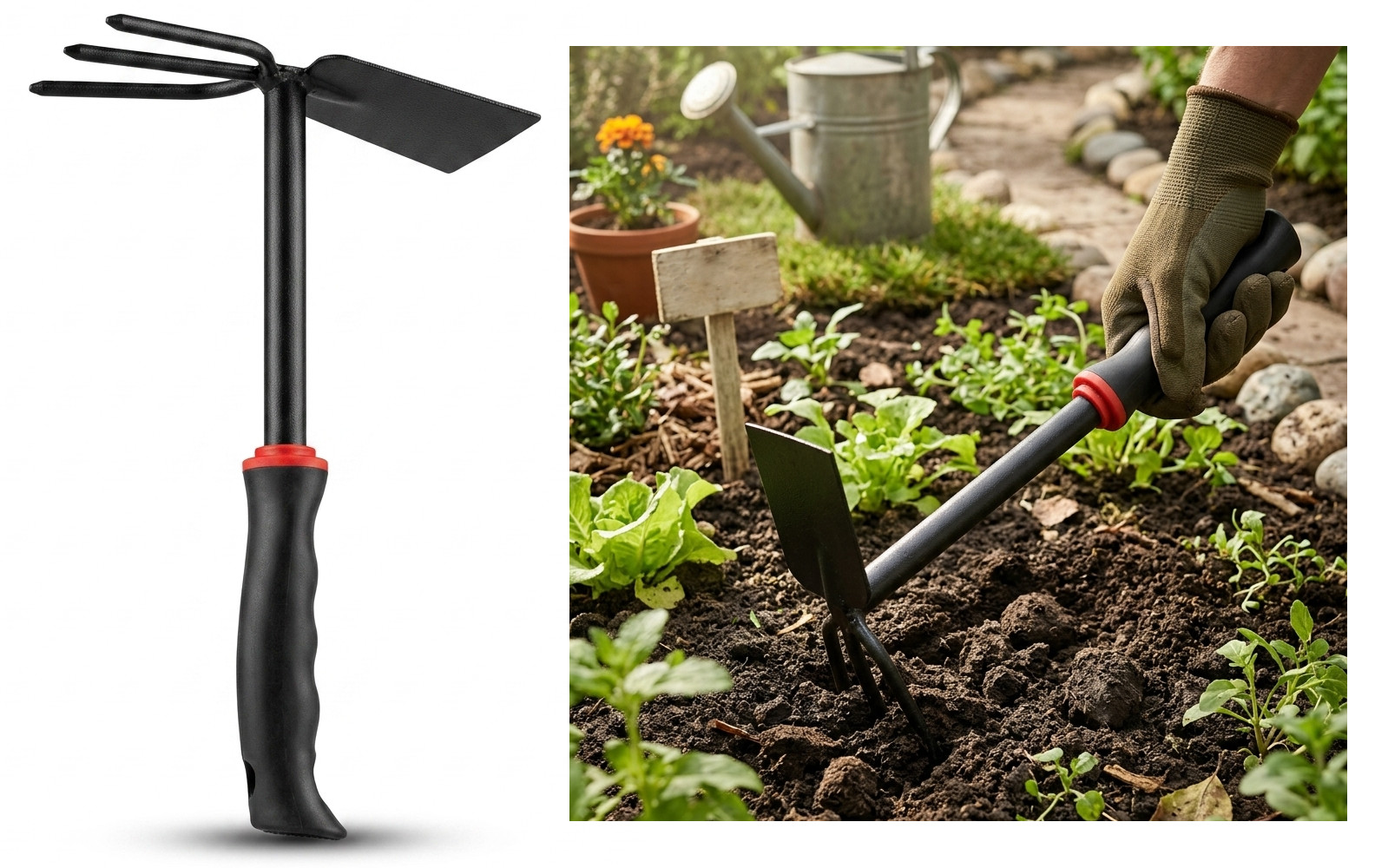 Motyka ogrodowa 2w1 PAZURY, KOPACZKA 27x18,5 cm