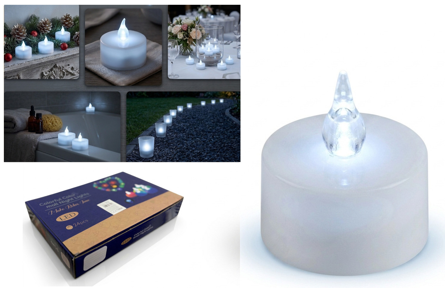 Świeczka, podgrzewacz LED stały płomień 3,5x3,5 cm ZIMNY BIAŁY - 1 szt