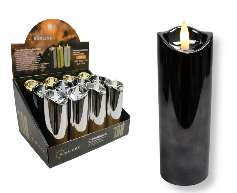 Świeca LED ze skaczącym płomieniem EFEKT LUSTRA (zlota, srebrna, grafit) 15x5,3 cm - 1 szt