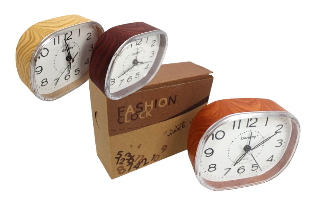 Zegar, budzik OWALNY obudowa imitująca drewno 12x9,5x4 cm mix kolor