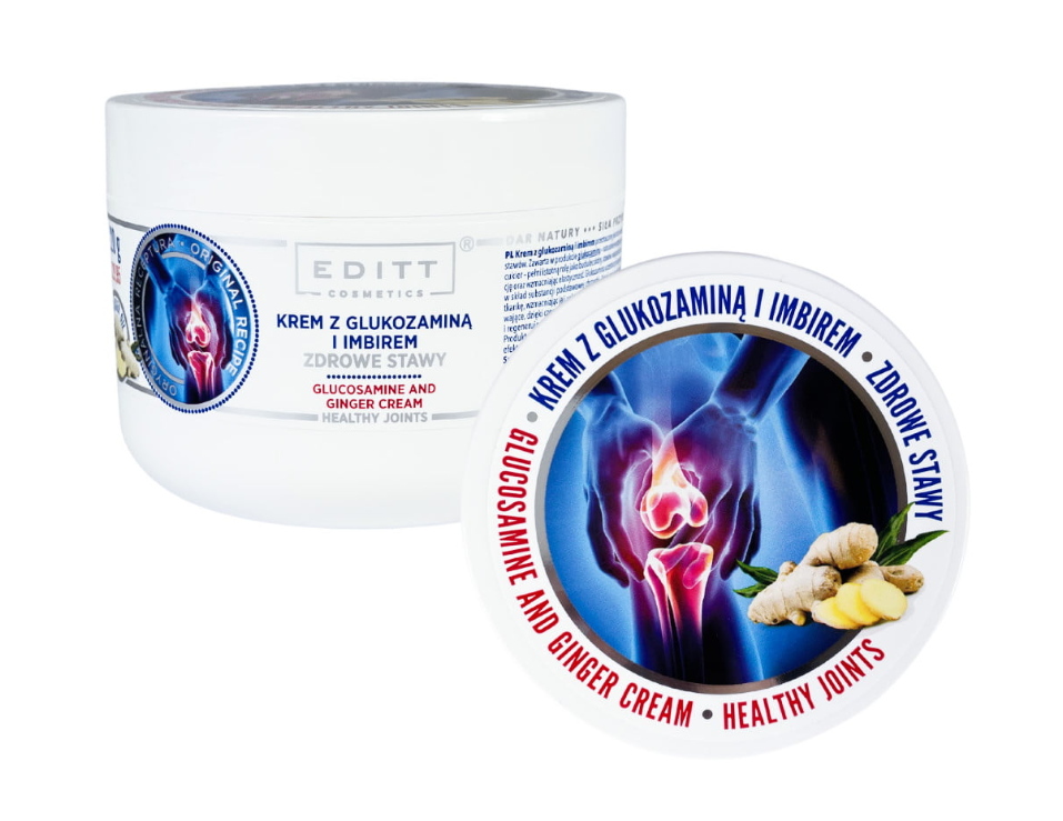 Krem do codziennej pielęgnacji ciała. Zawiera glukozaminę, która zapewnia odpowiednią kondycję stawów. Krem dodatkowo wzbogacony jest o olejek imbirowy, który zmniejsza napięcie skóry wokół stawów.