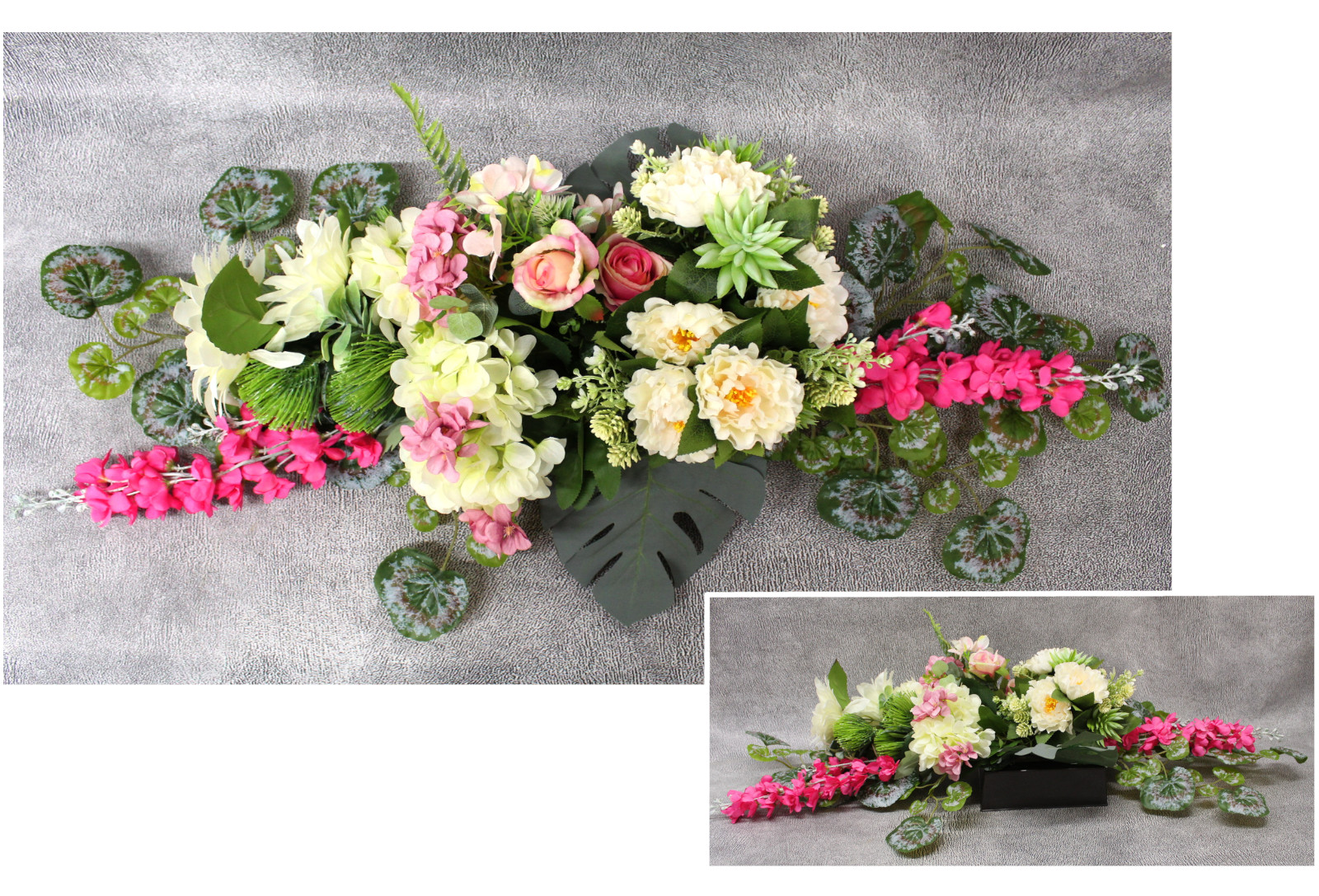 Stroik zalewany XXL 2 KWIATY PIANKOWE RÓŻOWE + mieszane kwiaty misa kwadrat (ok. 100x50x27 cm ) ok. 3,2 kg