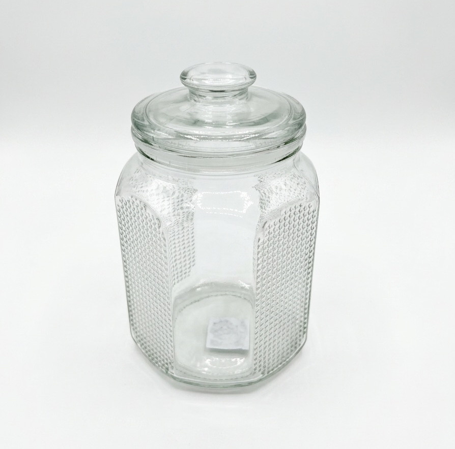 Słoik, słój szklany z SREBRNĄ nakrętką wytłaczany wzorek 1100 ml 16,5x11 cm