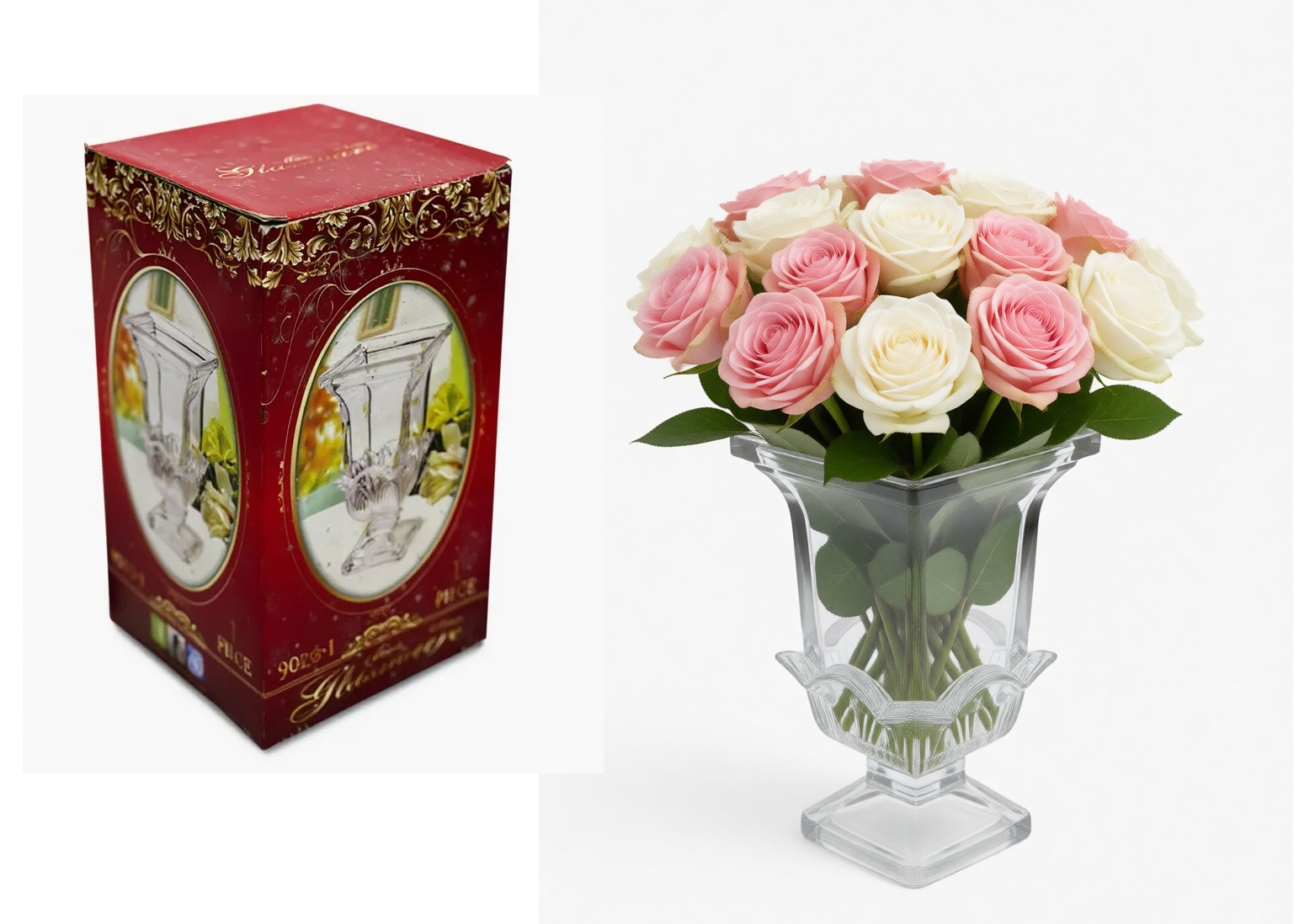 Wazon szklany na nóżce 19x12 cm ROMBY