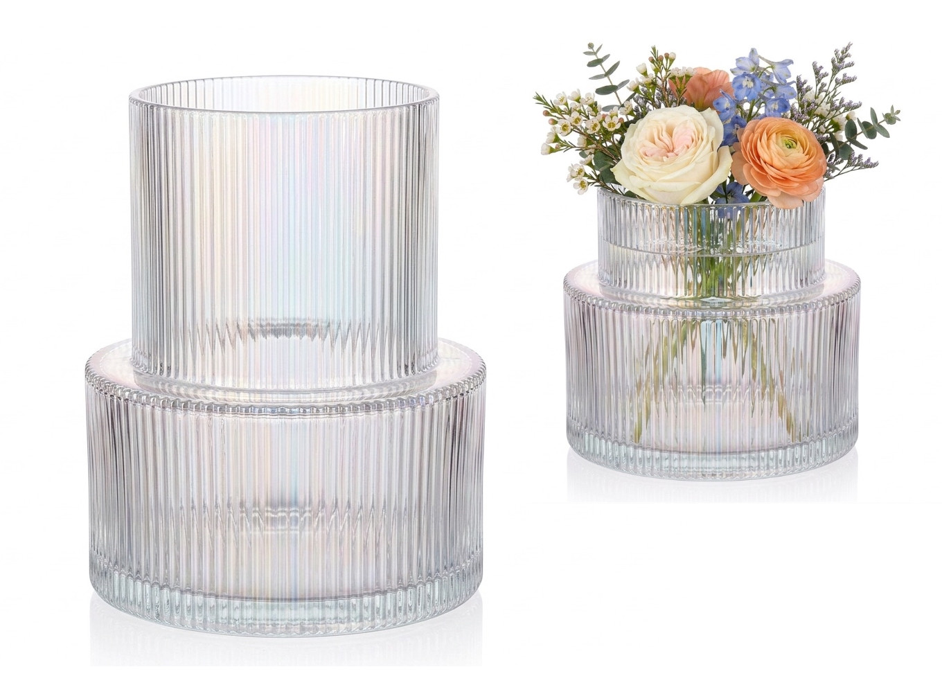 Wazon szklany ryflowany holograficzny 25x8 cm