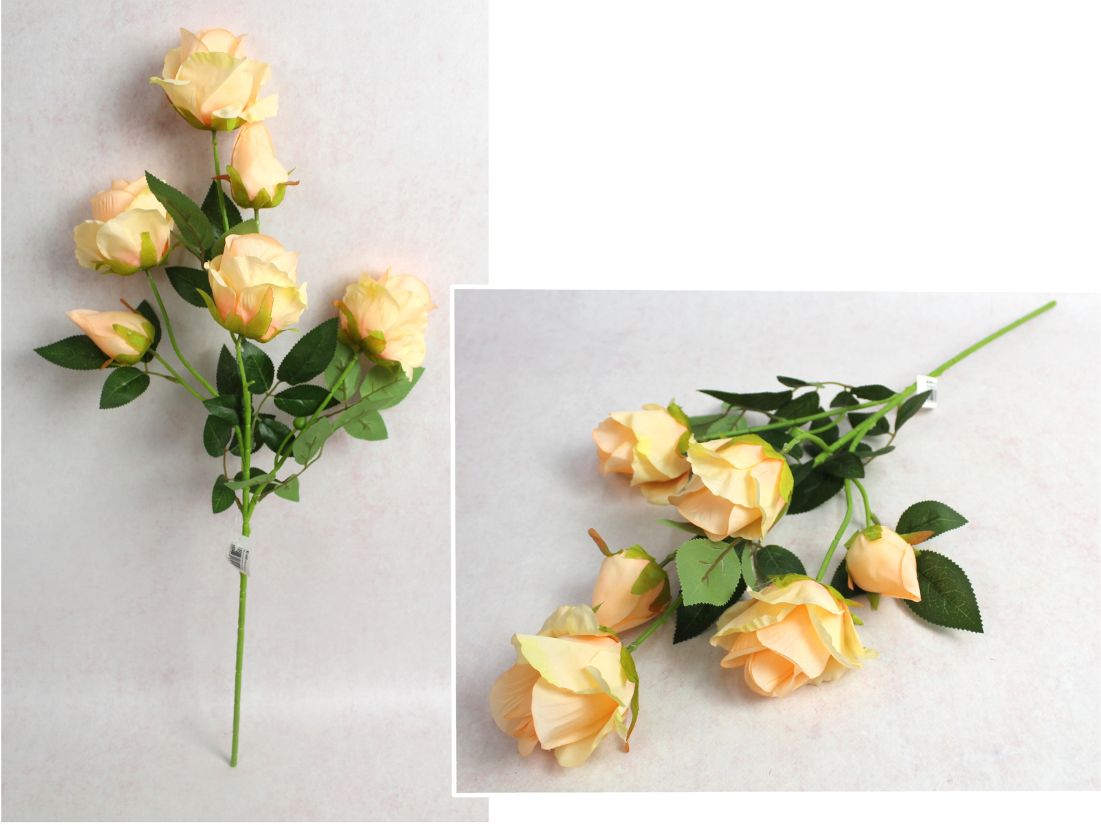 Kwiat RÓŻA wys. 69 cm, 3 ramiona (4 kwiaty 10x8 cm + 2 pąki) BRZOSKWINIOWA